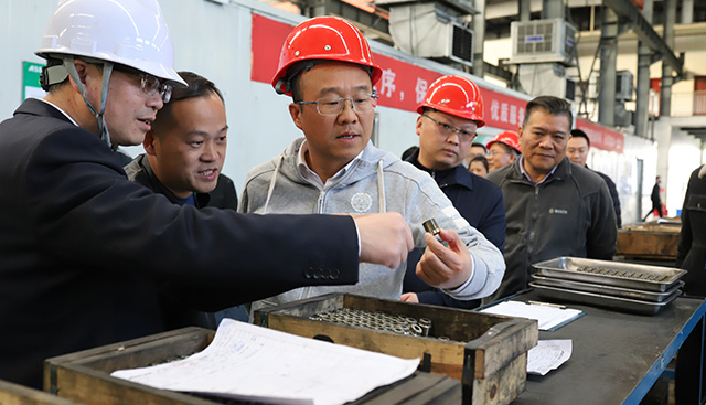 區委書記唐衛湘一行走進公司生產車間,深入了解公司的生產流程、產品和應用行業,詳細詢問公司市場開拓、產品競爭力、研發規劃、人才引進計劃、公司發展前景和上市規劃。唐衛湘書記對公司的產品和技術表示了高度贊賞,勉勵公司要以的精神、的勁頭、的作風,堅定走專精特新小巨人高質量發展之路,為株洲重振老工業城市雄風發揮積極作用。