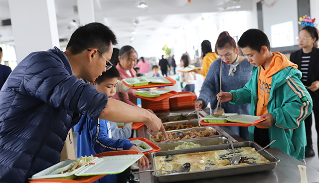 活動最后是親子共餐環節,也是小朋友們最期待的溫情時光。食堂師傅們準備的水蒸蛋,土豆紅燒肉、酸辣雞雜等豐富菜品大獲好評。小朋友們驚呼“原來爸爸媽媽每天吃的工作餐這么美味,明天還要來玩!”